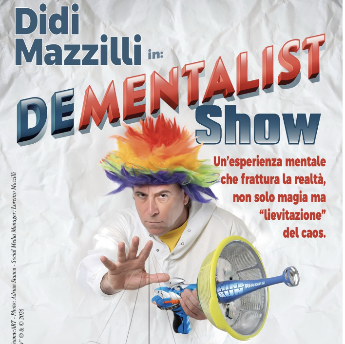 Uno spettacolo tra illusionismo, comicità e improvvisazione, con un mago caotico, imprevedibile e completamente fuori controllo.